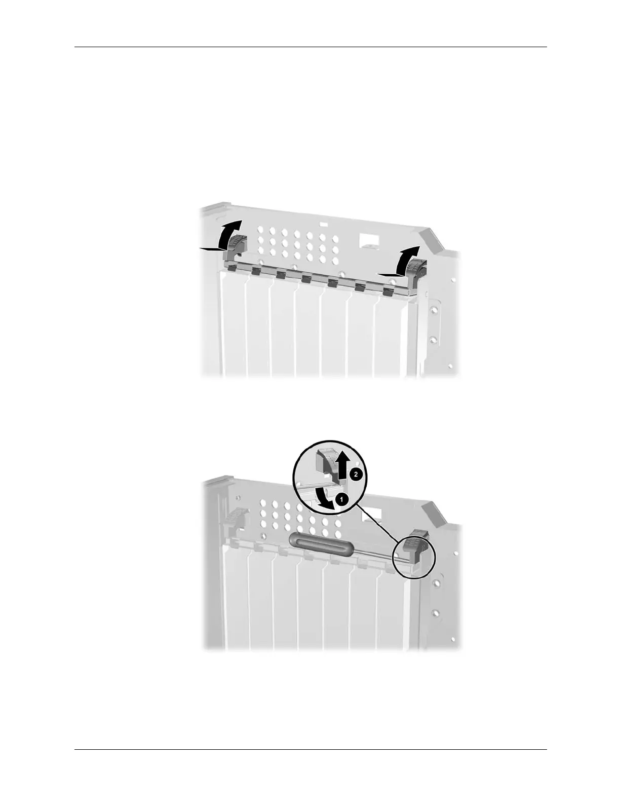 4. Push down and out on the two green thumb tabs inside the chassis and rotate the expansion