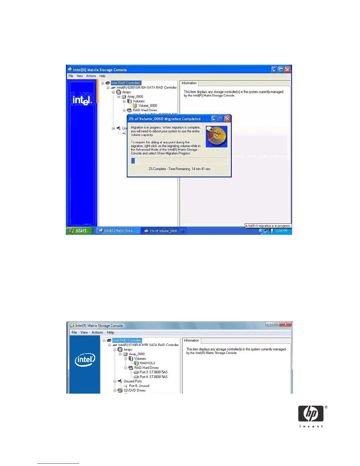 NOTE: HP Compaq dc7800 Business PC products only support RAID based on three identical SATA hard