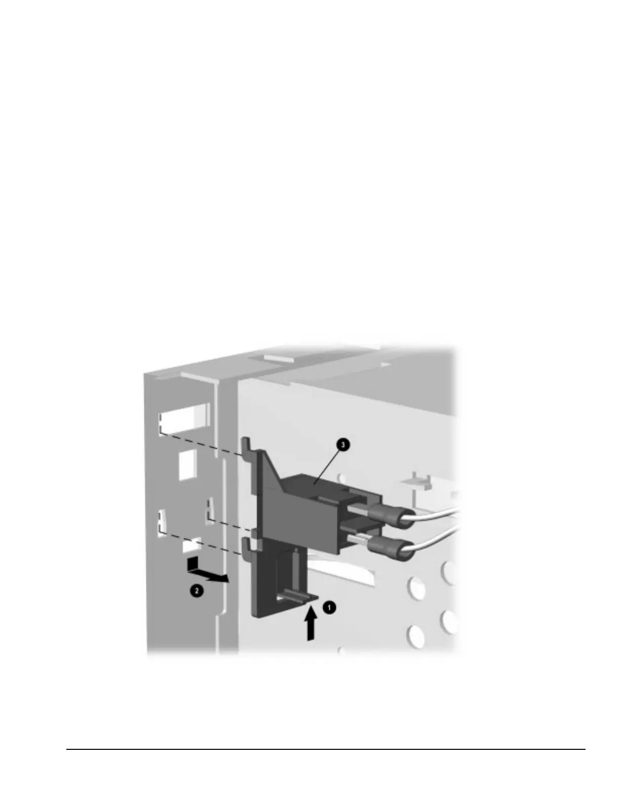 While squeezing the tab, push the holder down 2 and out of the chassis.