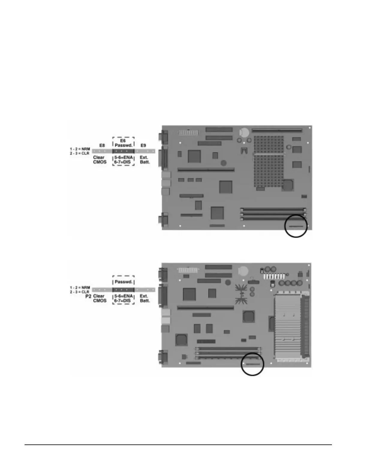 on the password header located on the system board. The password header is labeled “E6 Password”