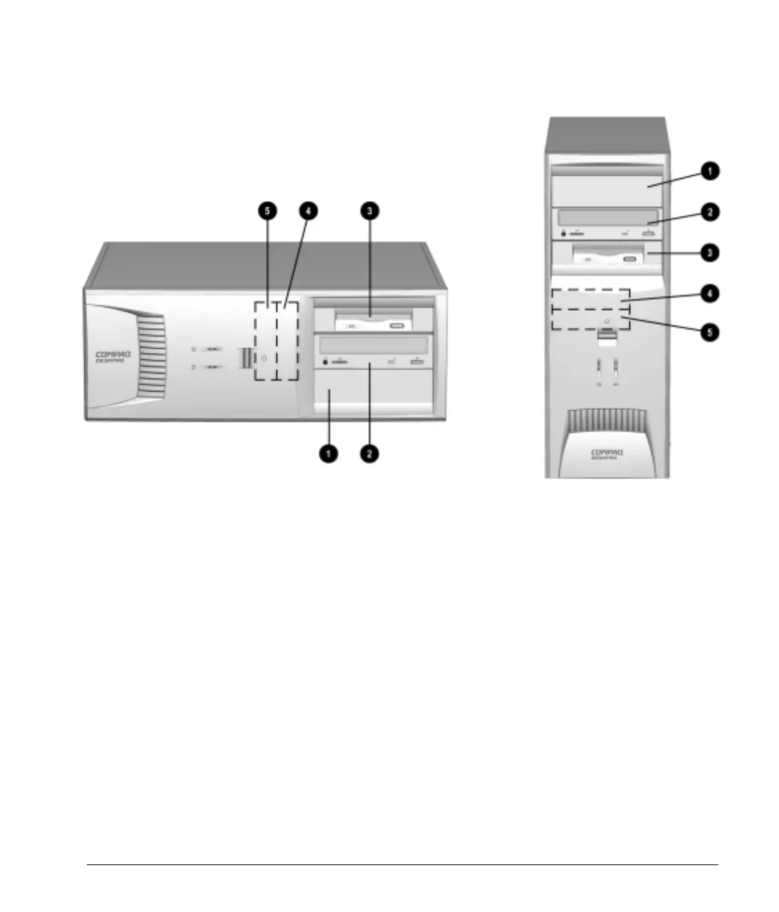 Two 5.25-inch, half-height bays for optional drives (labeled as drive bays 1 and 2)