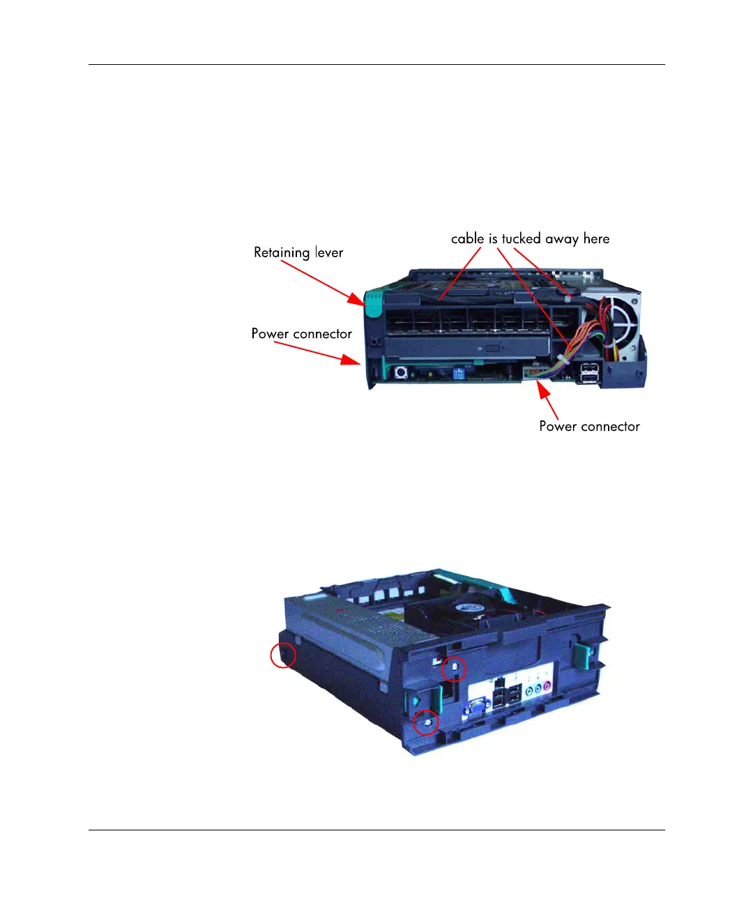 2. Remove the two internal power supply connectors. Lift the