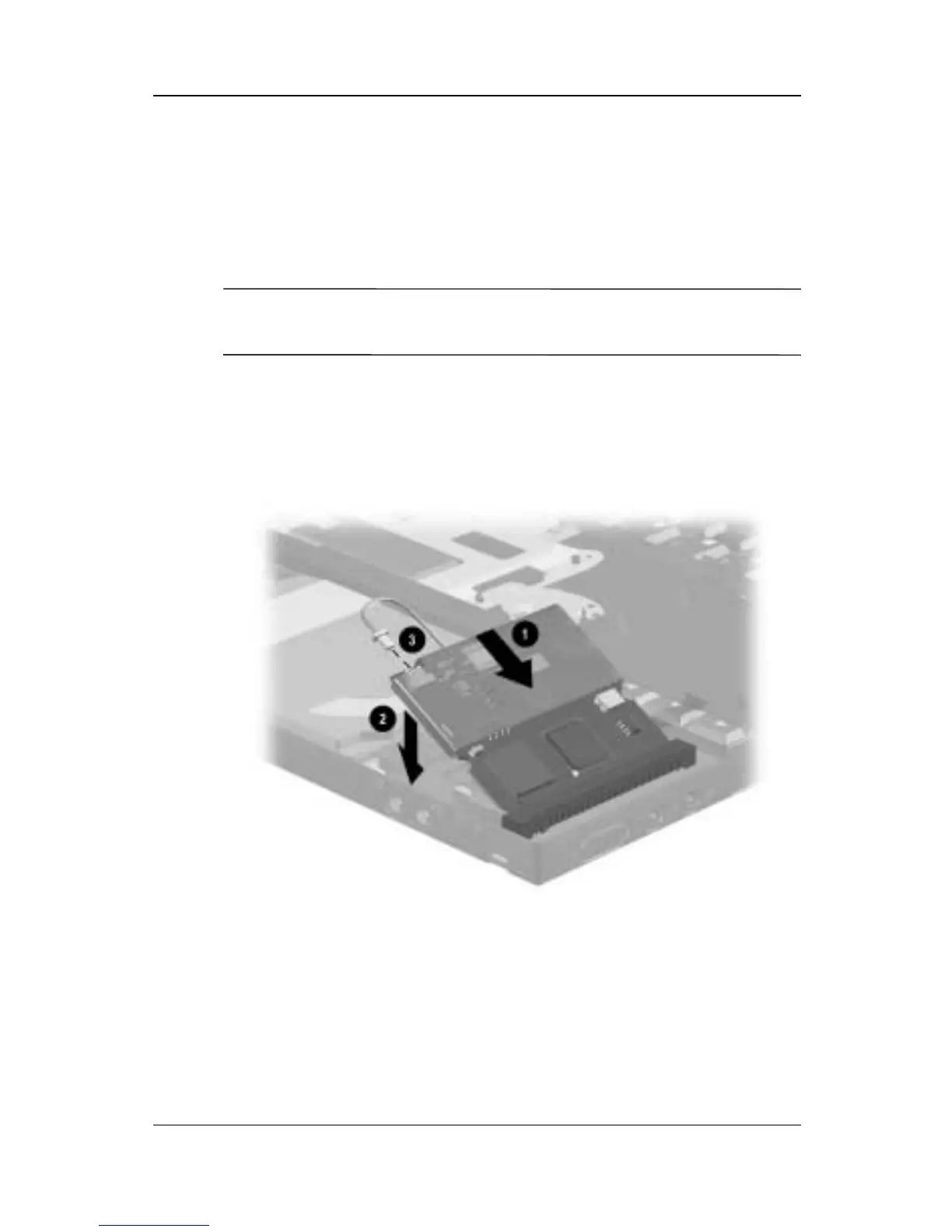 12. Plug the internal modem-to-RJ11 cable 3 (located inside the