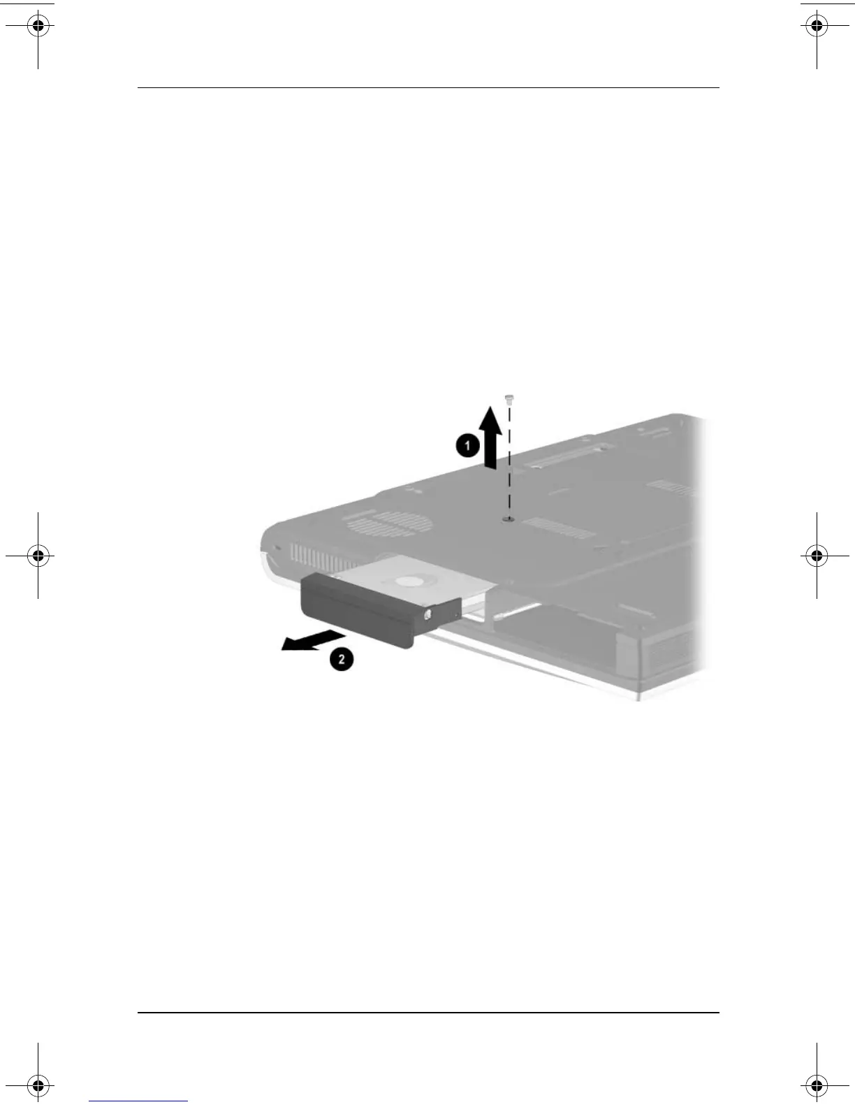 c. Slide the hard drive forward 2 to unseat the hard drive