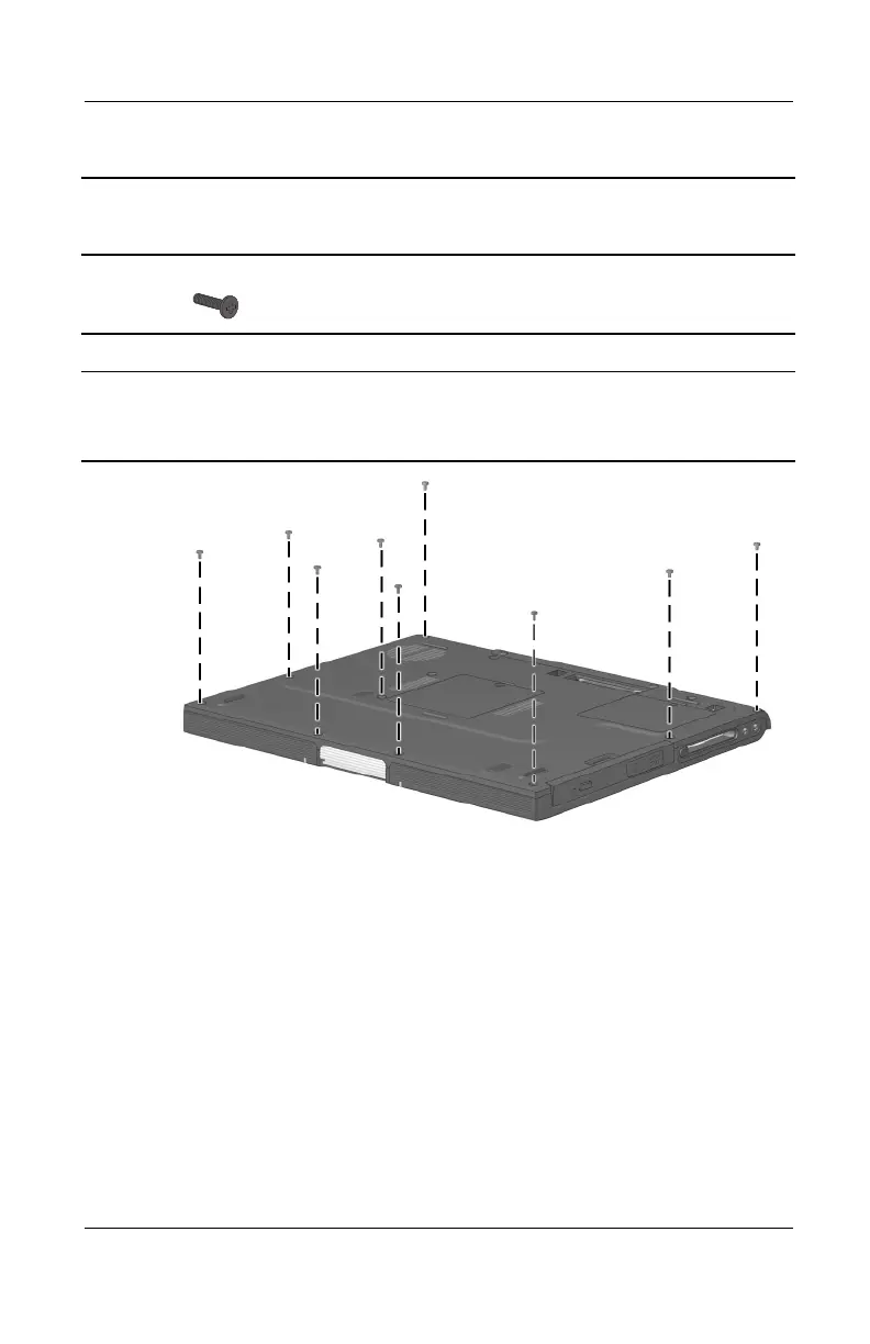 Nine screws that secure the top cover to the base enclosure through the bottom