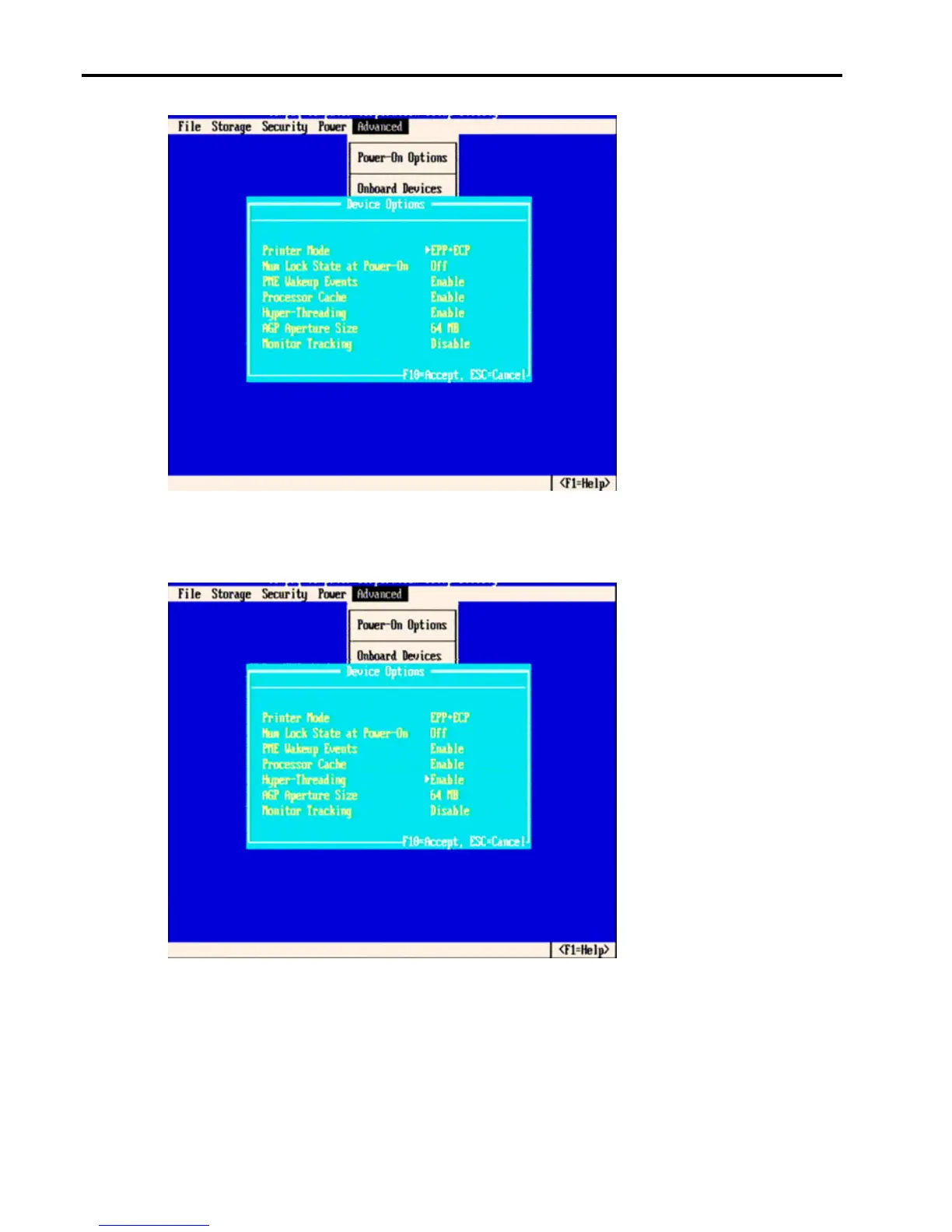 7. Use the Left or Right arrow key to toggle between Enable or Disable Hyper-Threading,