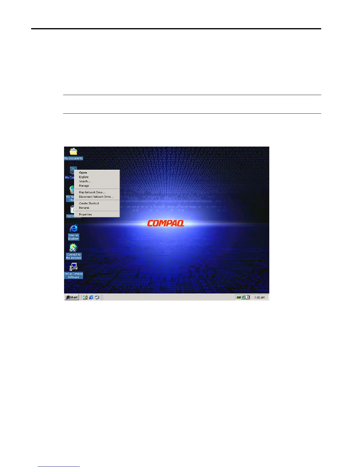 1. At the Desktop screen, right click on My Computer and move the mouse to the Properties