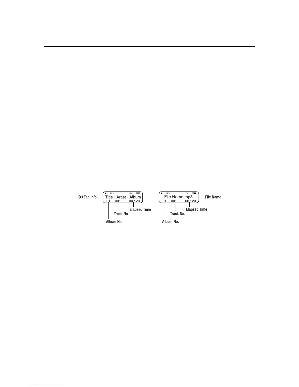 (xxx.mp3) first, followed by the ID3 tag information of the MP3 file. If the file playing does not have