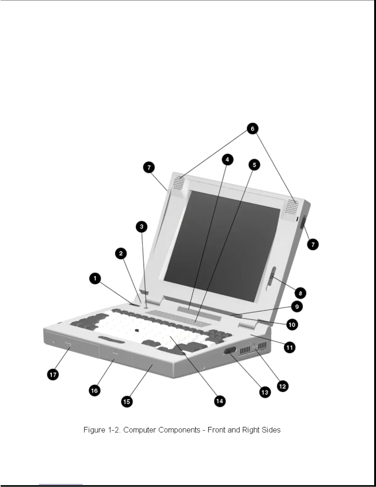 Table 1-3. Computer Components - Front and Right Sides