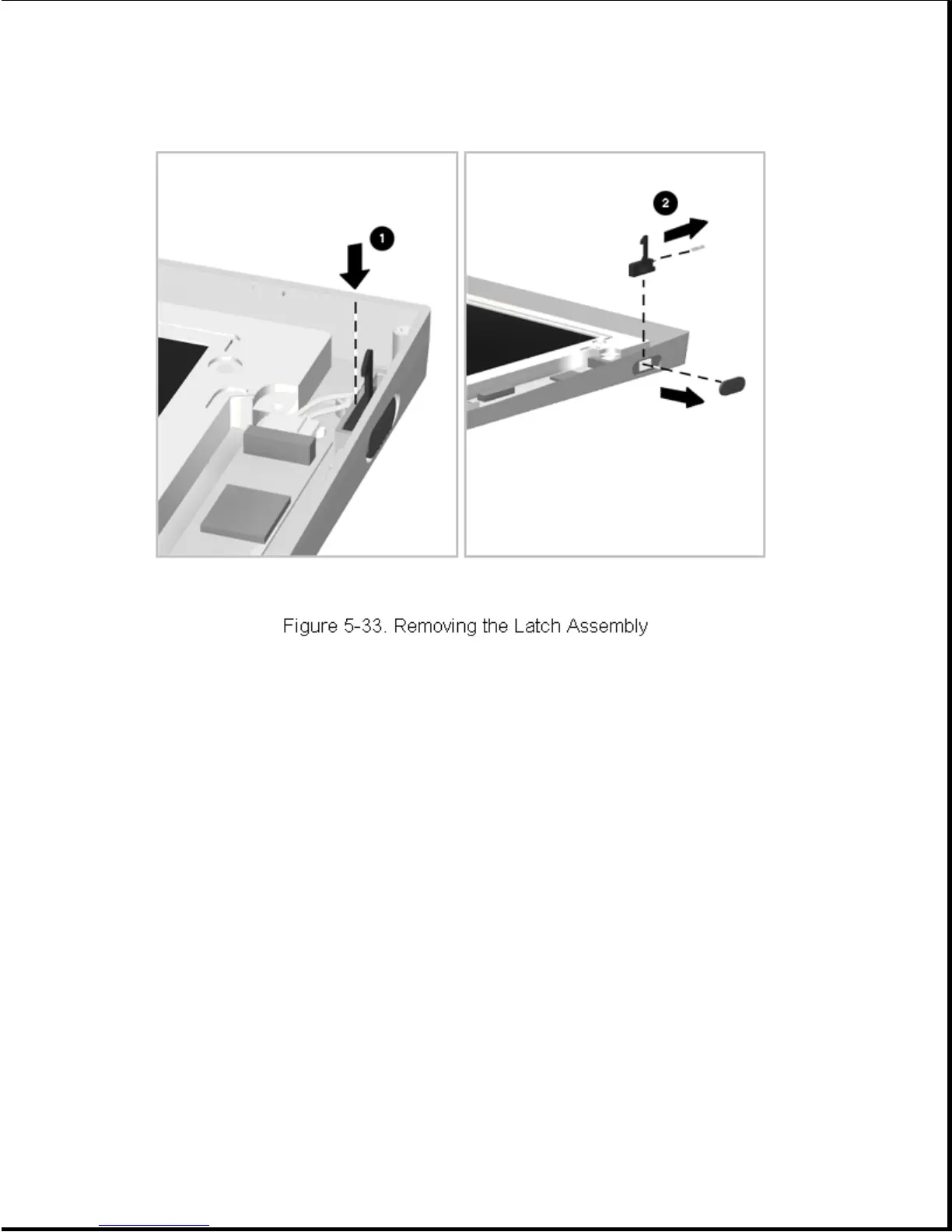 4. Lift out the latch [2] and its attached spring (Figure 5-33).