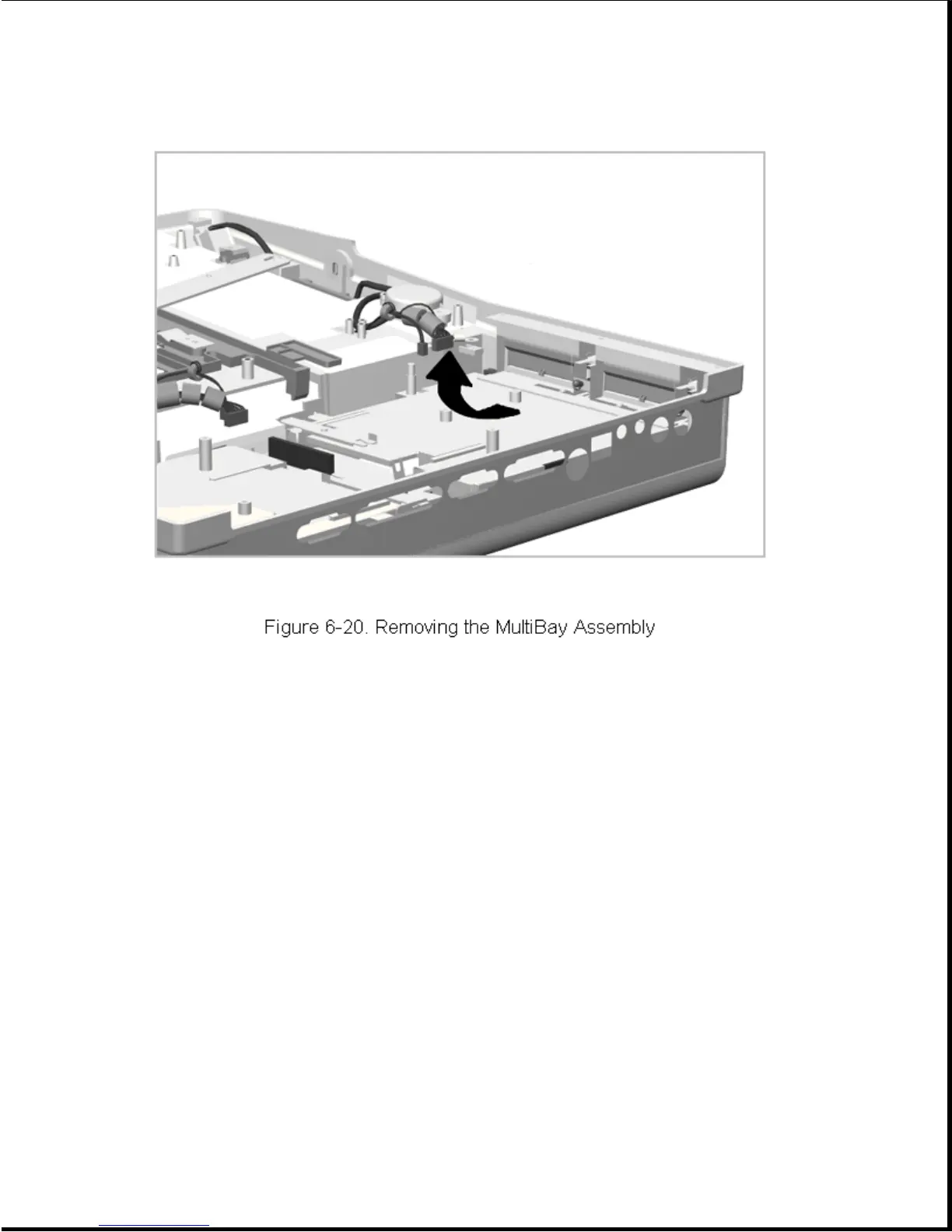 end nearest the MultiBay door first (Figure 6-21). Take care not to damage