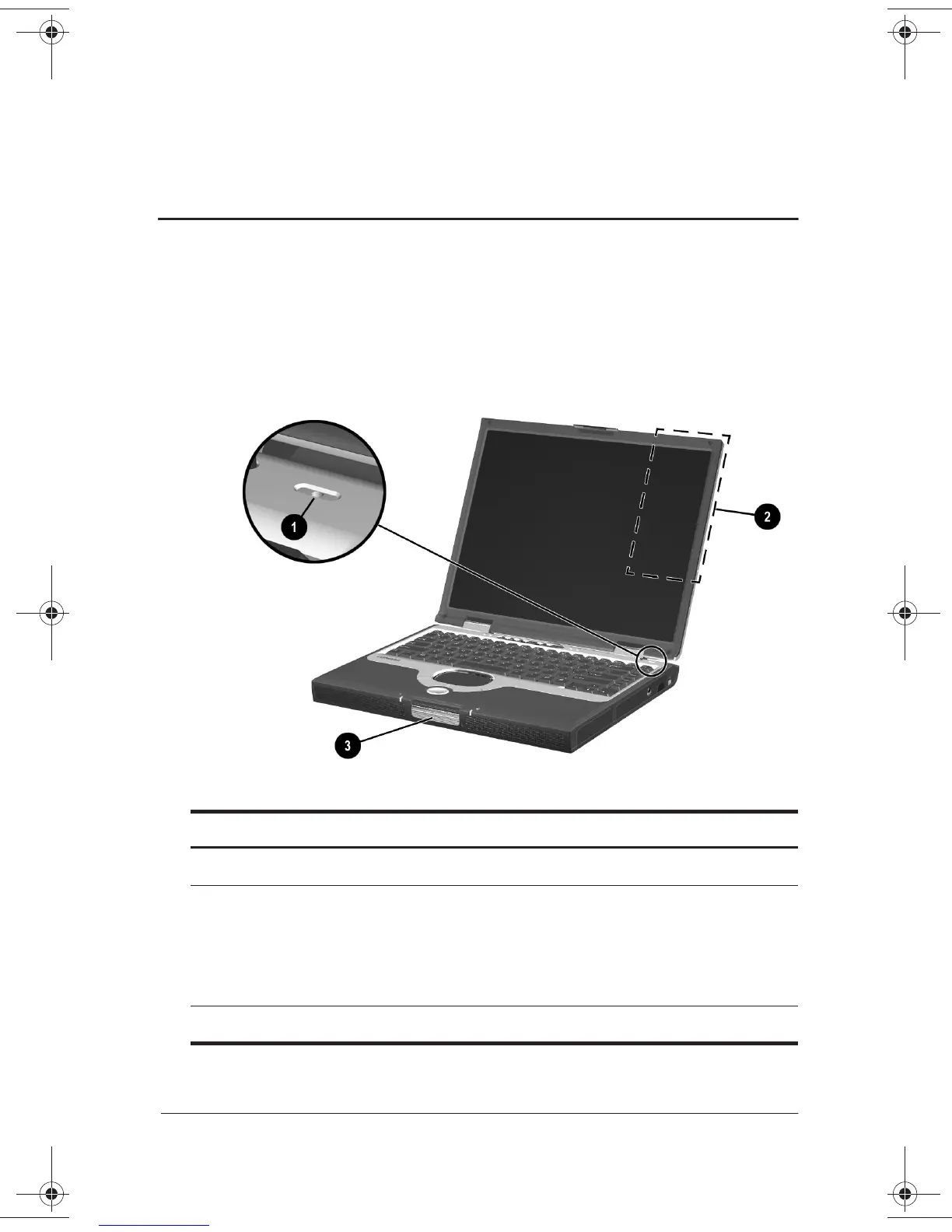 Display release latch Opens the notebook.