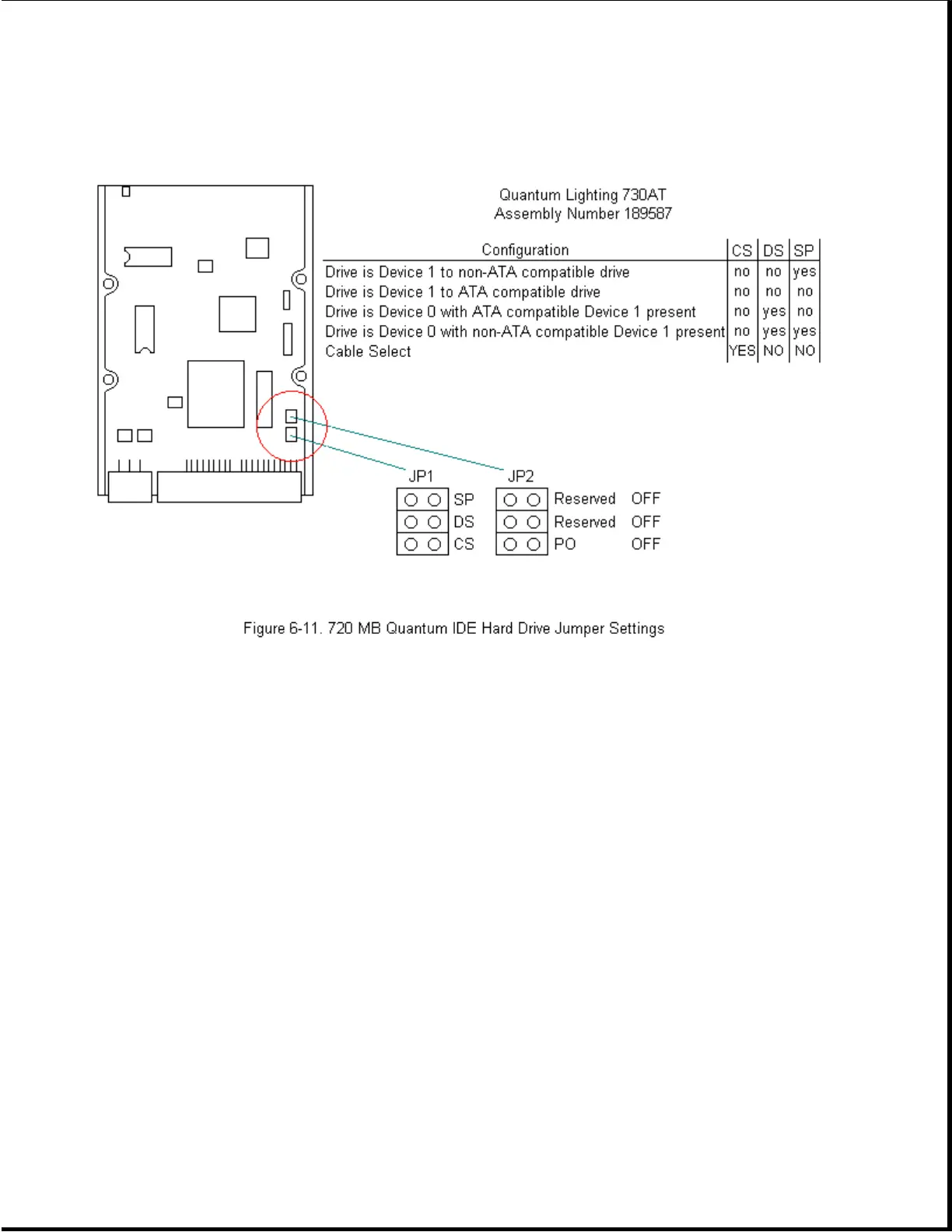 The jumper settings for the 1 GB IDE are shown in Figure 6-12.