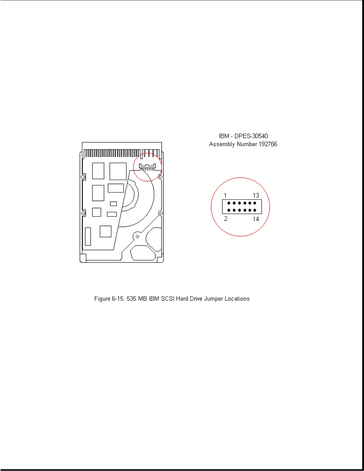Table 6-14. 535 MB IBM SCSI-2 Hard Drive Jumper Options (Shipped