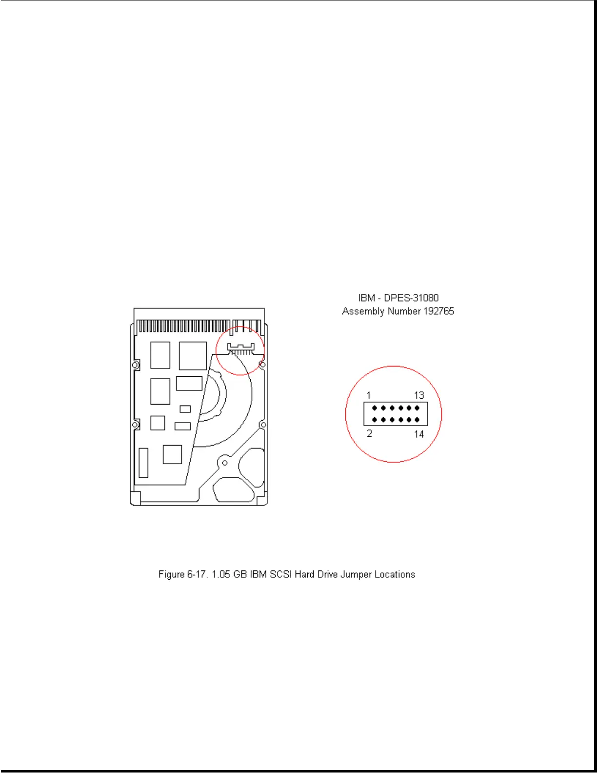 Table 6-16. 1.05 GB IBM SCSI-2 Hard Drive Jumper Options (Shipped
