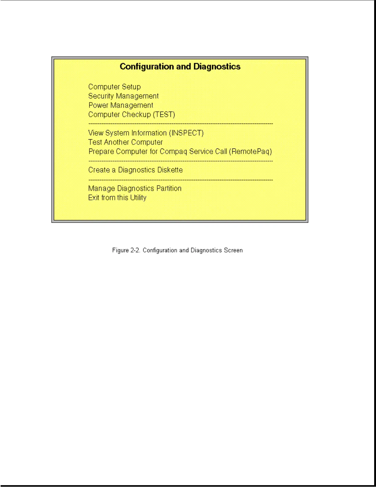 4. A menu similar to the one shown in Figure 2-2 will be displayed. You
