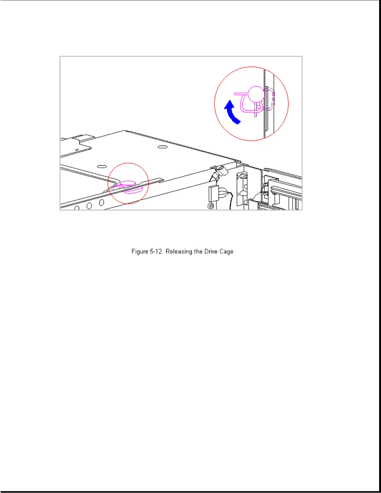 Push the metal drive cage release (Figure 5-13) away from the drive