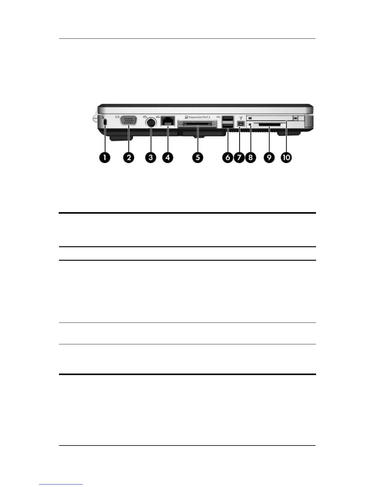 1 Security cable slot Attaches an optional security cable to the