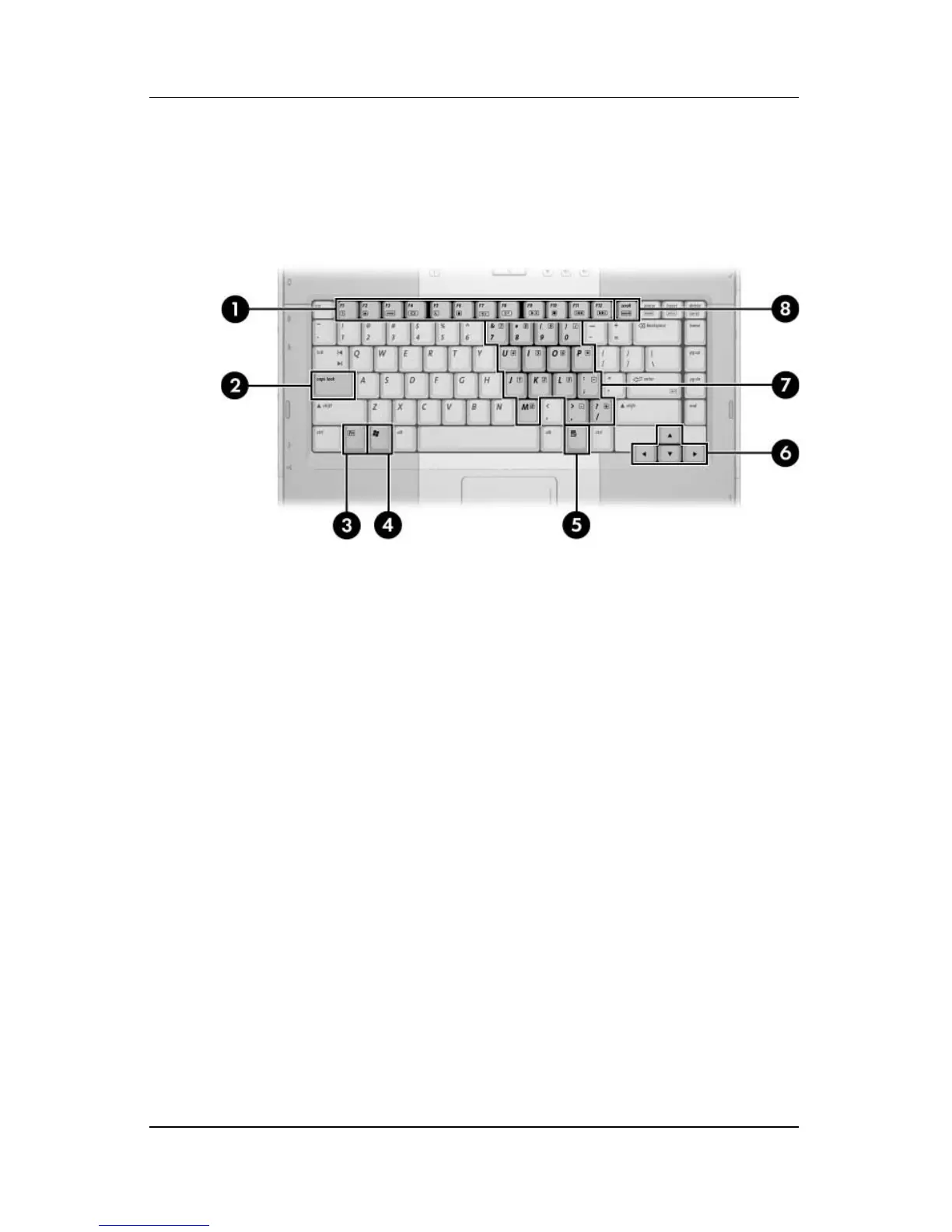 The standard keyboard components of the computer are shown