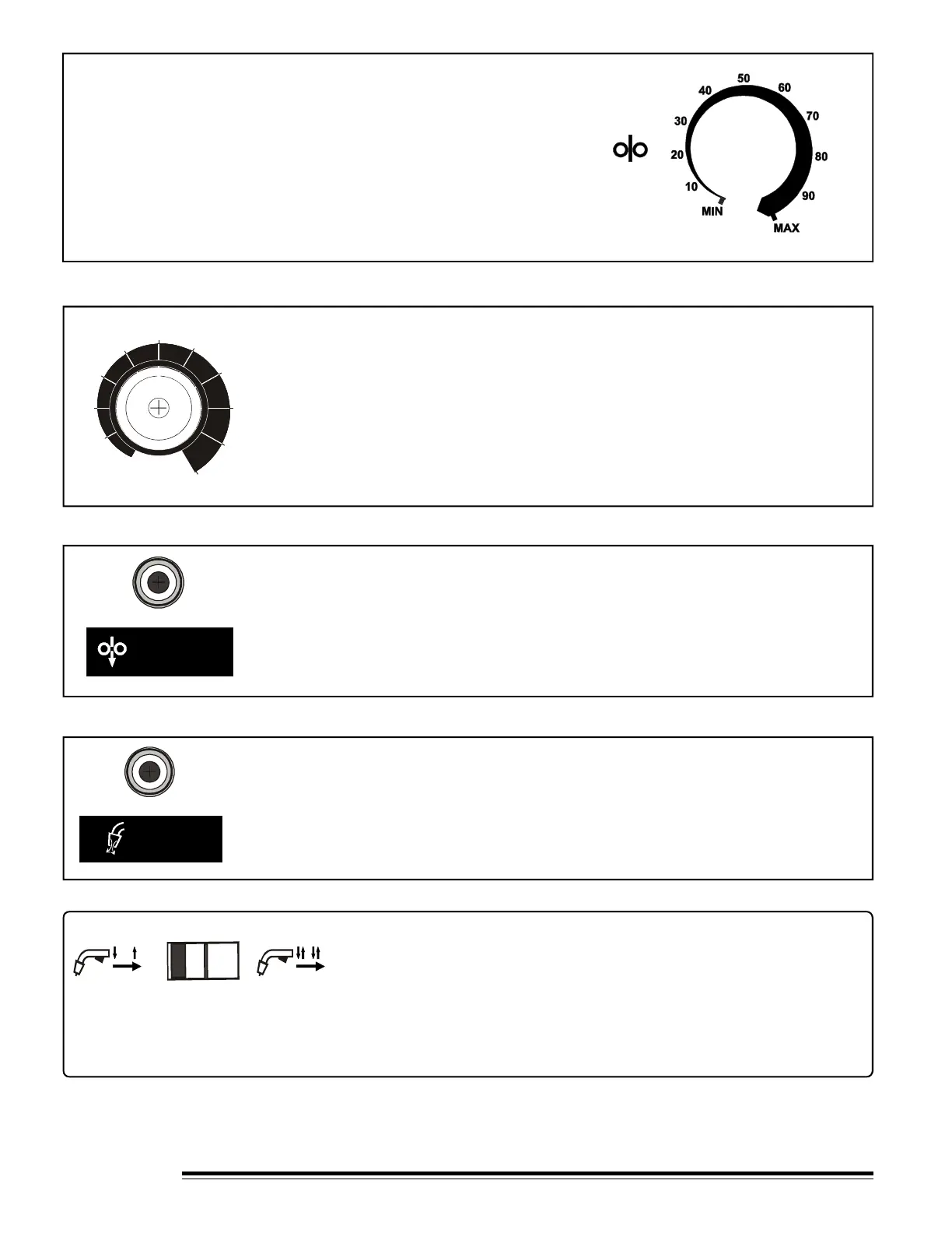 Push and hold button to momentarilly energize feed welding wire at speed set on