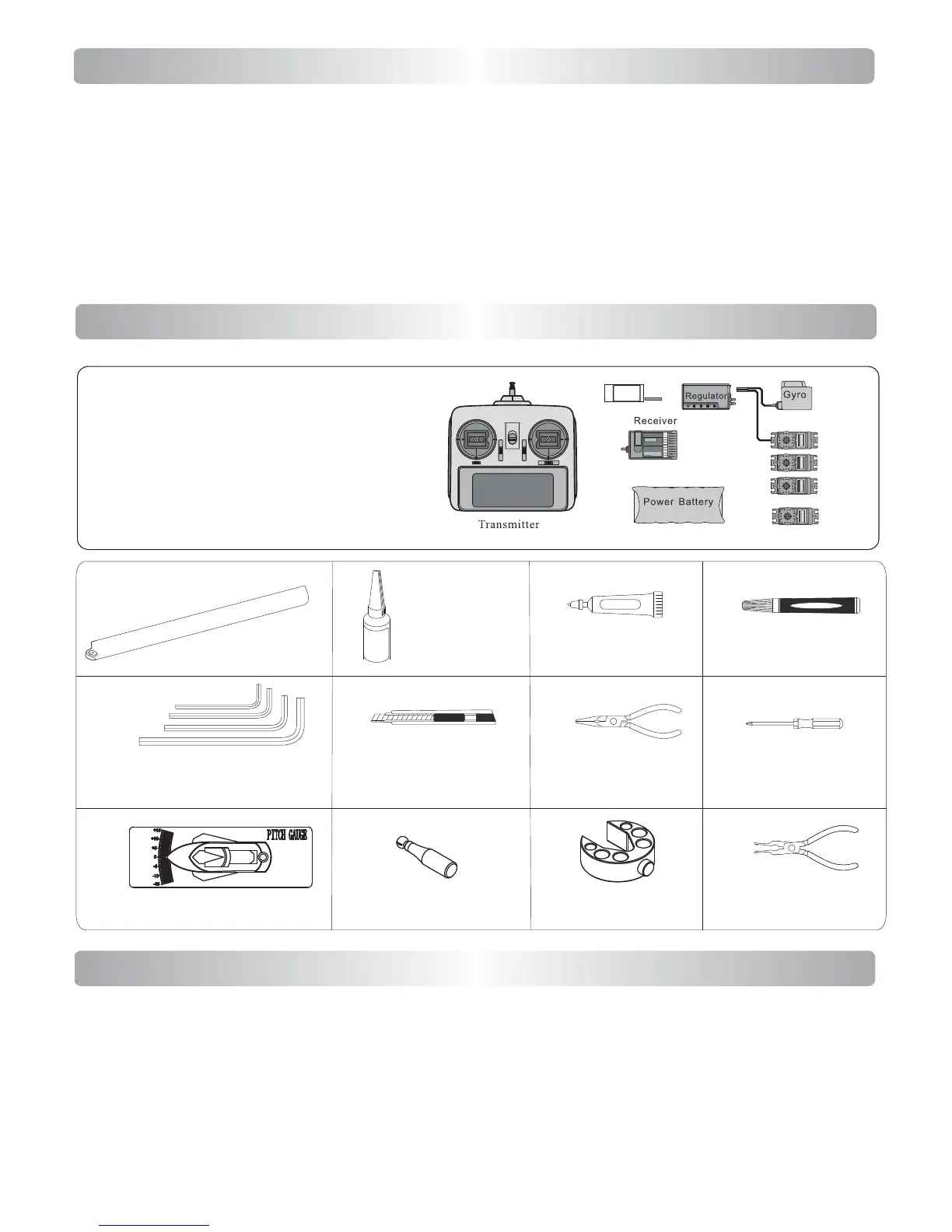 • Don’t “track” the main blades by holding the tail boom. This is a temptation to builders who cannot hover yet and is very dangerous.