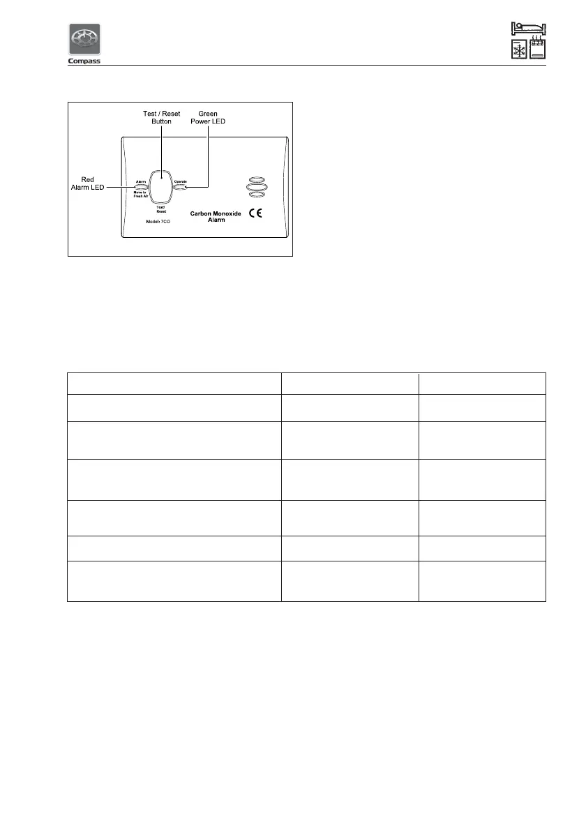 Loud continuous alarm with the red LED Dangerous levels of CO Follow emergency