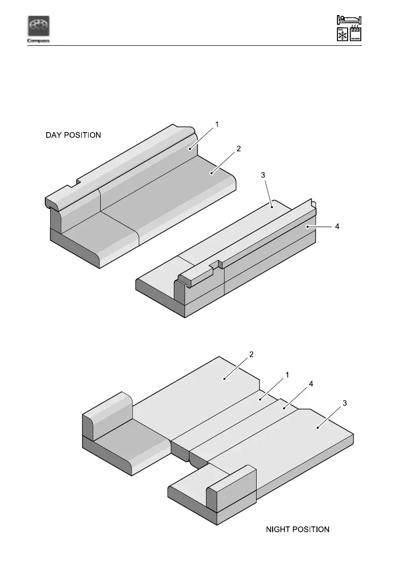 The front double bed is made up by lifting the two side beds up and pulling them together to