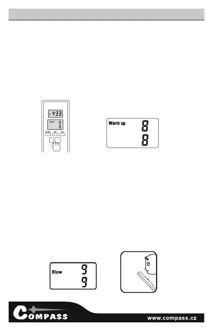 2. Zobrazí se symbol "warm up (zahřívání)" a je zahájeno odpočítá-