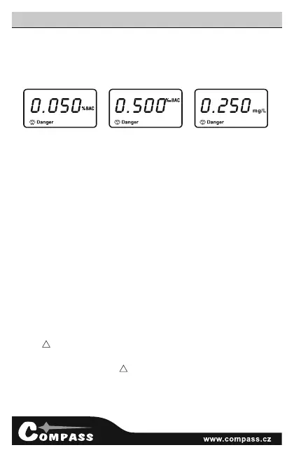 display "0.000 %BAC "or "0.000 ‰BAC" or "0.000 mg/l" value.