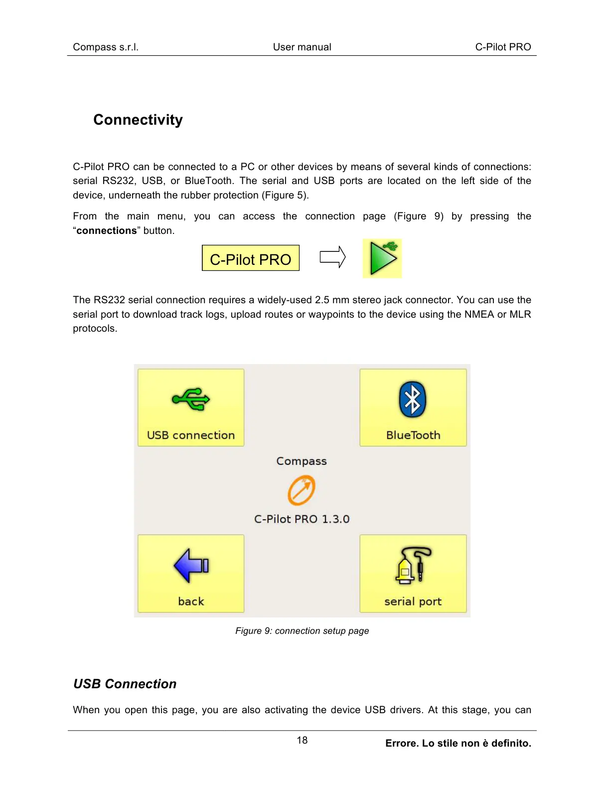 C-Pilot PRO can be connected to a PC or other devices by means of several kinds of connections: