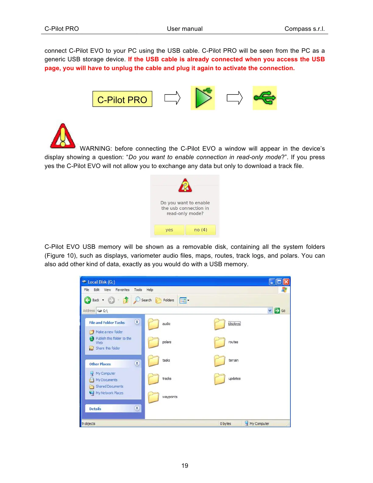 C-Pilot EVO USB memory will be shown as a removable disk, containing all the system folders
