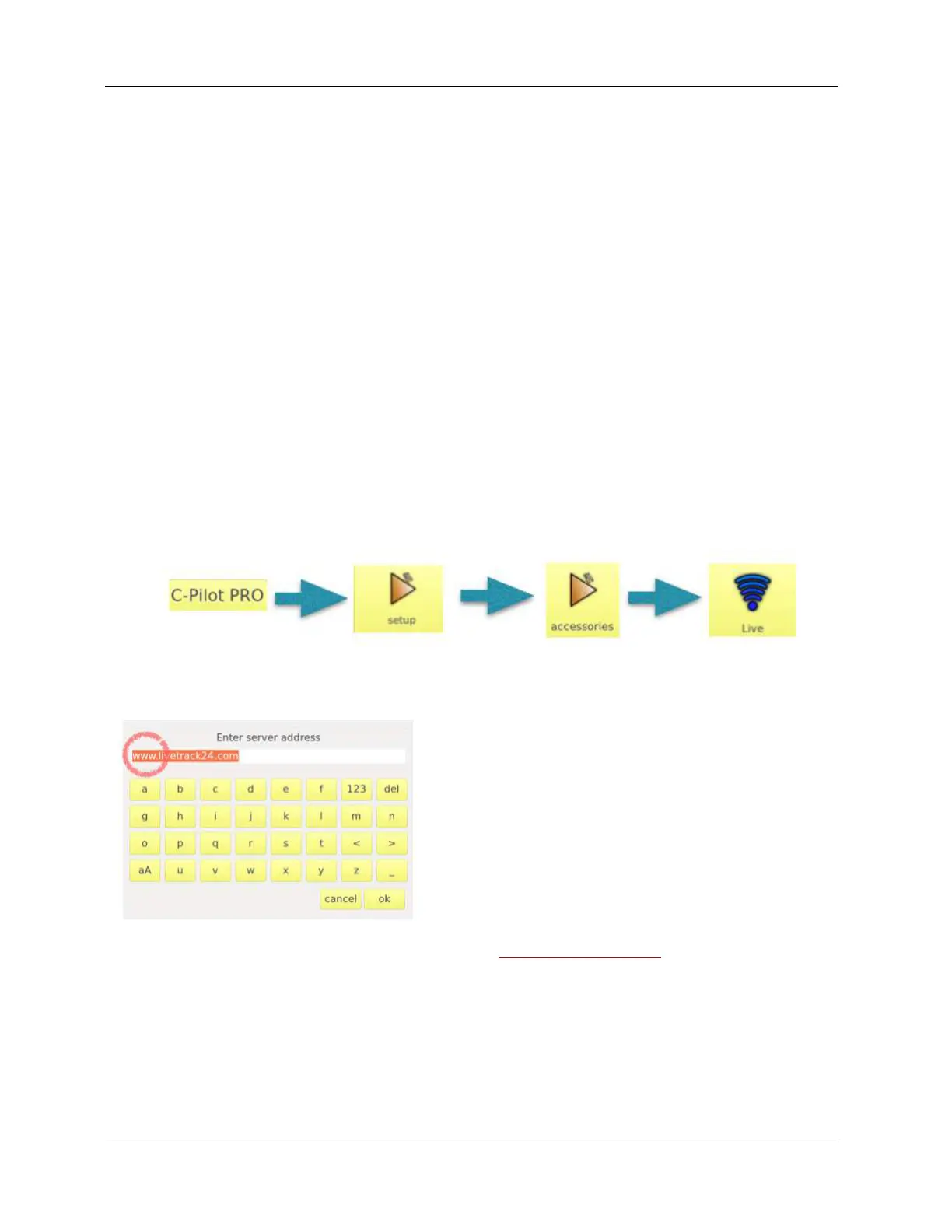 1) press server button and write the name of server www.livetrack24.com. ATTENTION: control
