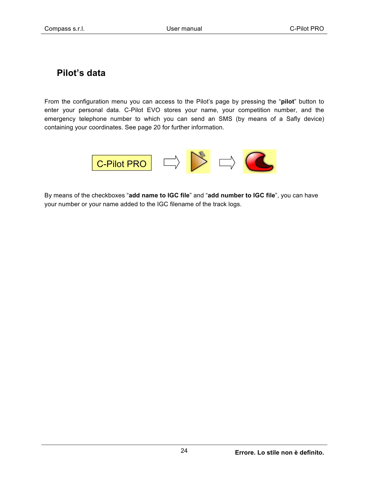 enter your personal data. C-Pilot EVO stores your name, your competition number, and the