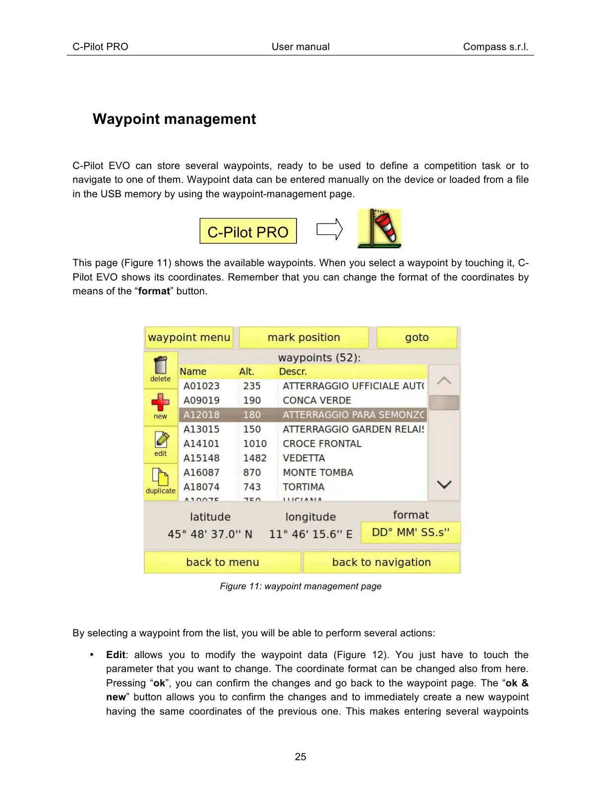 C-Pilot EVO can store several waypoints, ready to be used to define a competition task or to