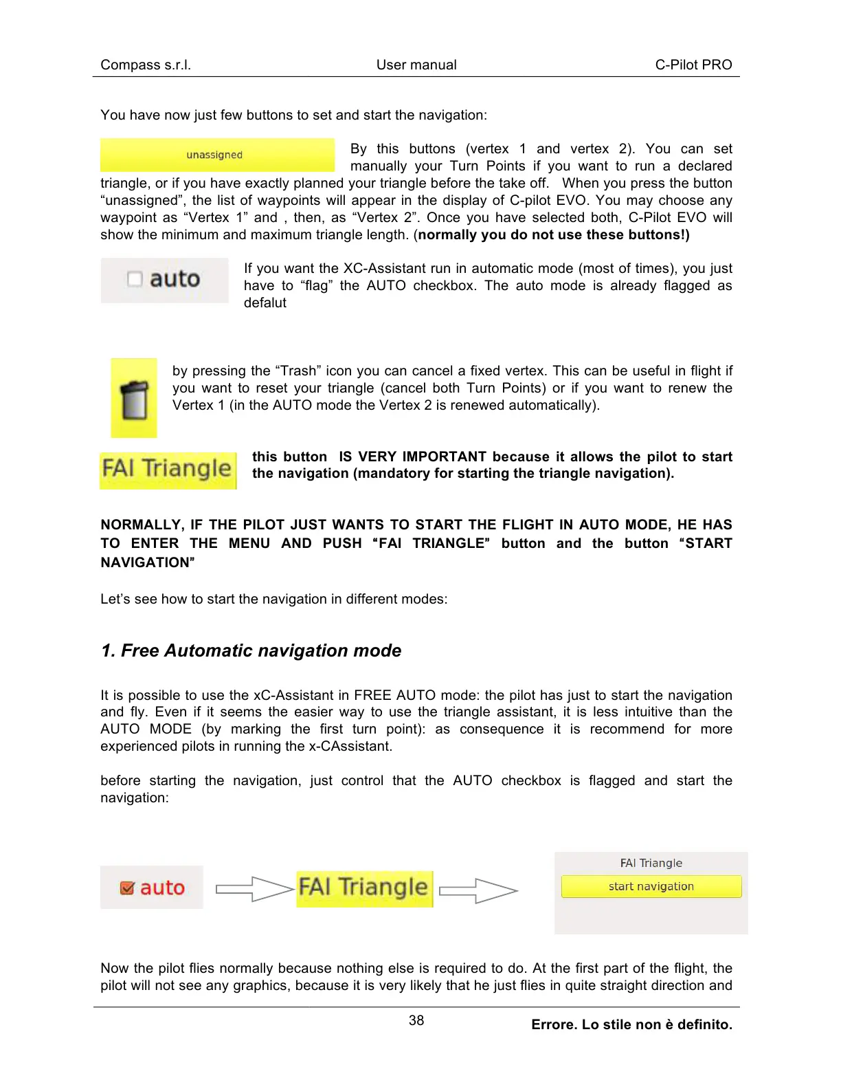 It is possible to use the xC-Assistant in FREE AUTO mode: the pilot has just to start the navigation