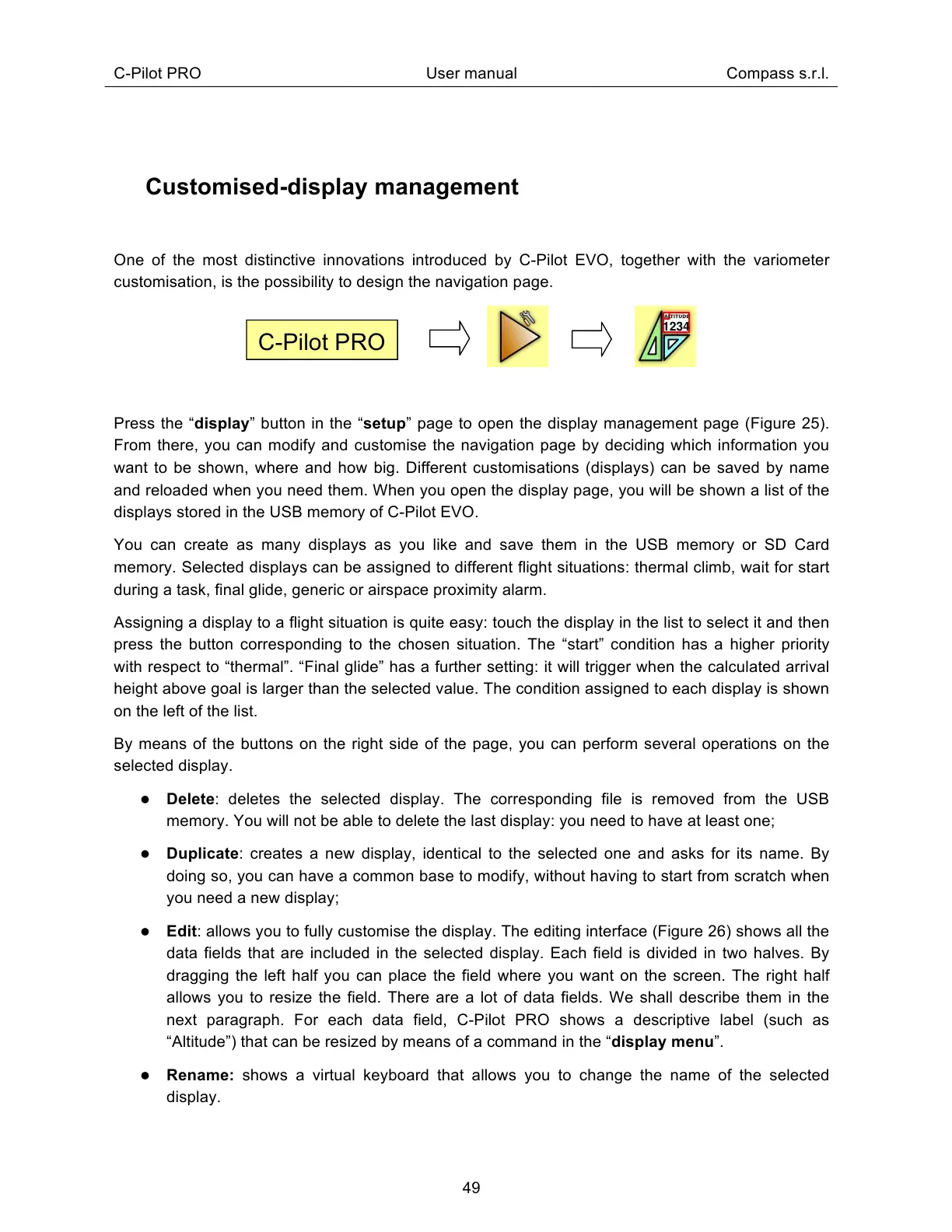 displays stored in the USB memory of C-Pilot EVO.