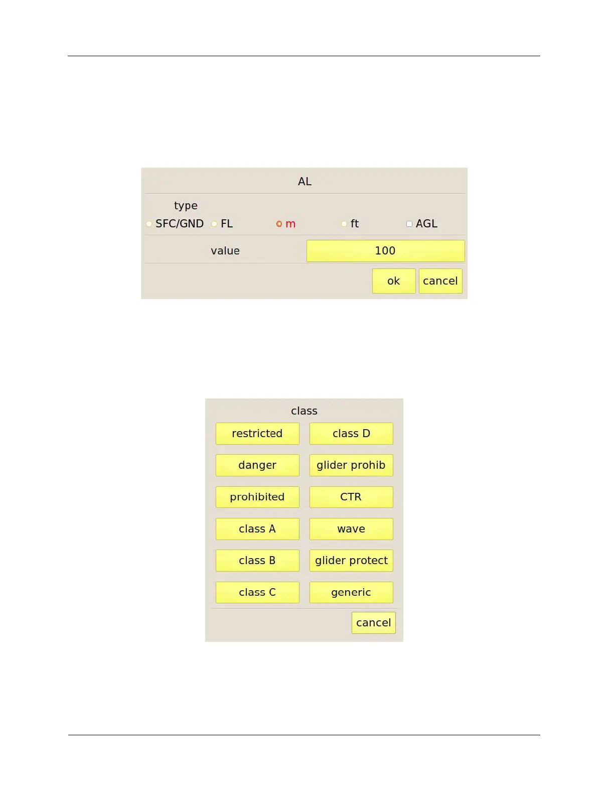Figure 35: airspace class setting.