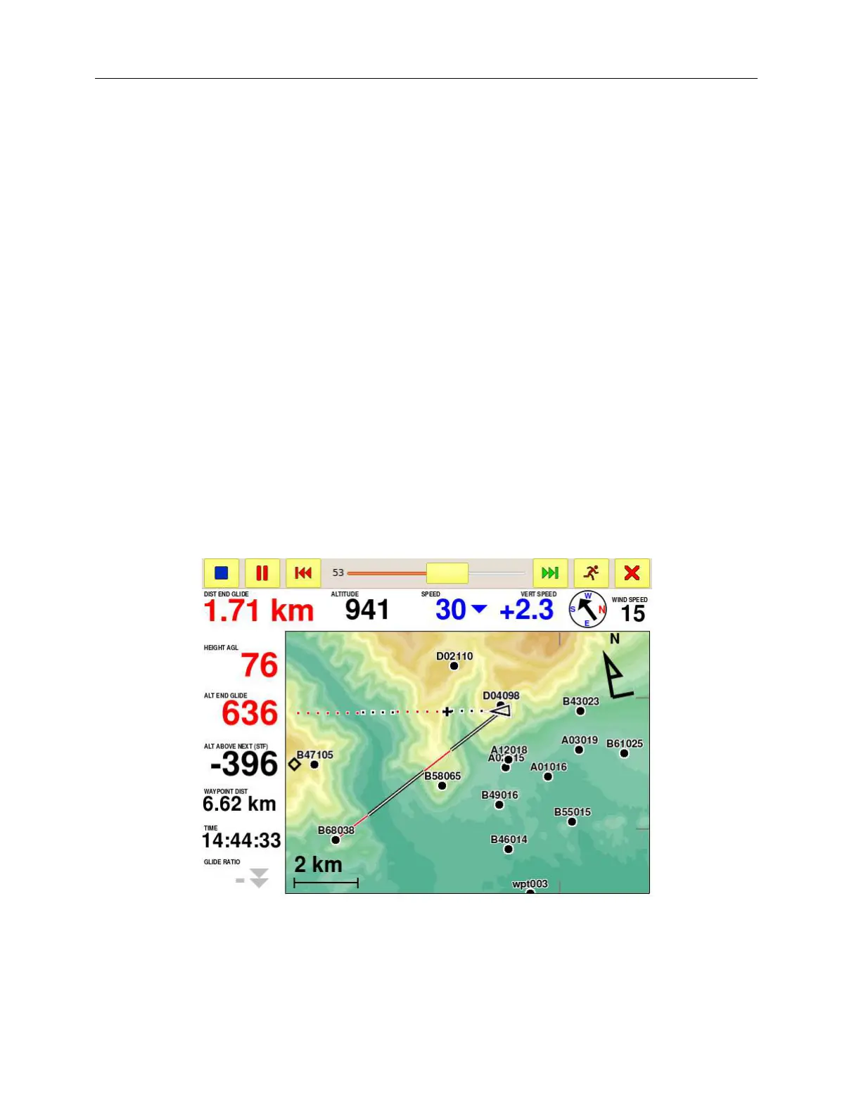 Figure 38: glide over terrain along your heading line and toward a waypoint.