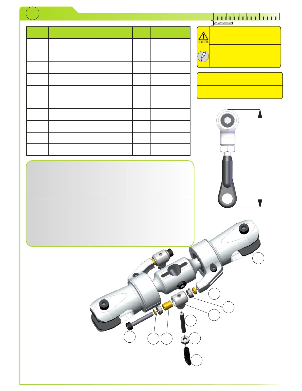 ball link (6) to swash driver (1). Slide bolt (7) through washer (3),