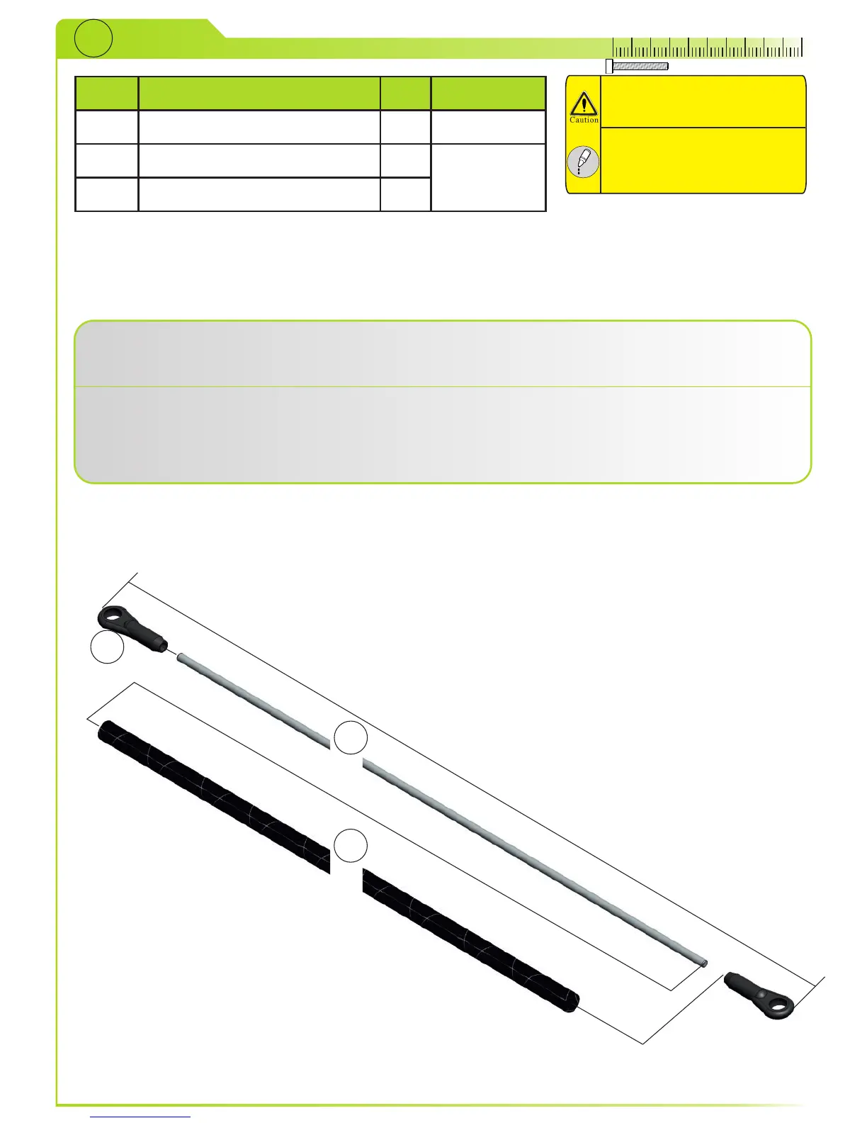 Put Steel wire (2) through cf tube (3) and screw ball link (1) on both sides.