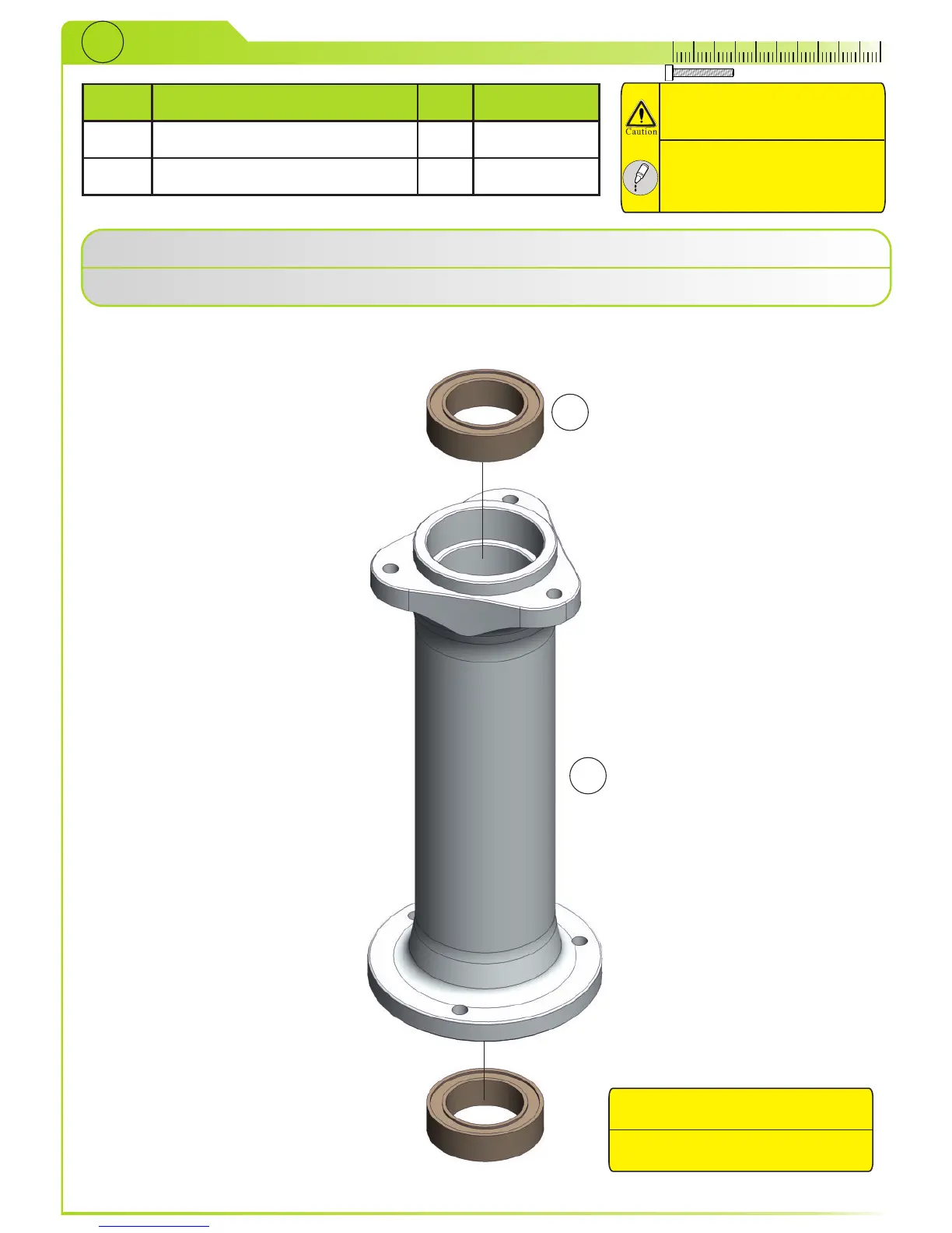 Pressen Sie die Radialkugellager (2) in den Hauptlagerbock (1).