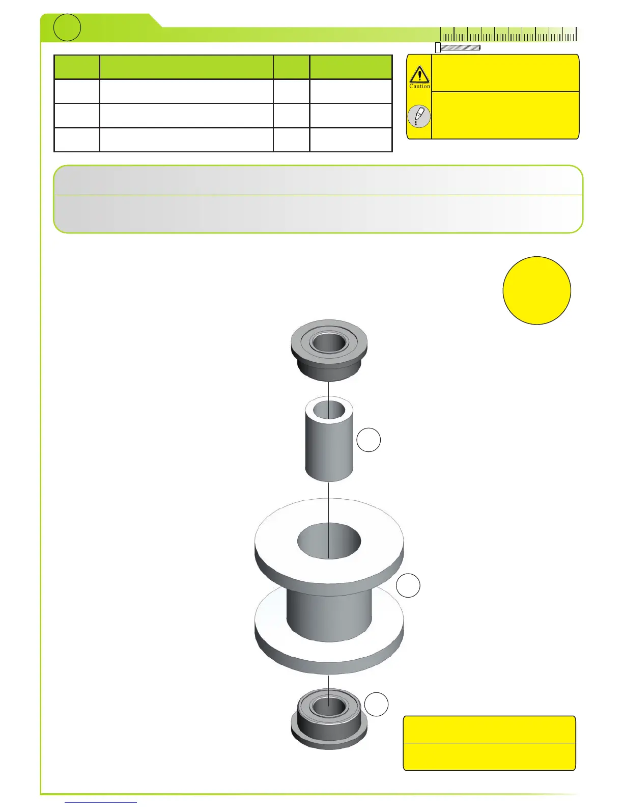 Press bearings (3) into sleeve (1). Do not forget to put spacer (2) between bearings.