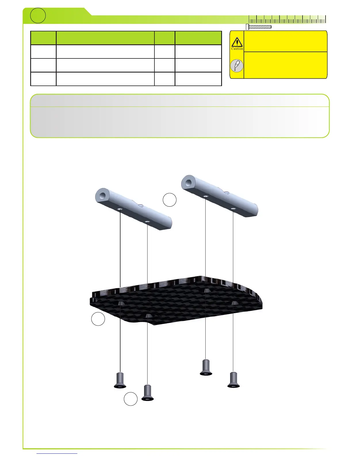 Use bolts (3) to mount spacers (2) to cf plate (1).