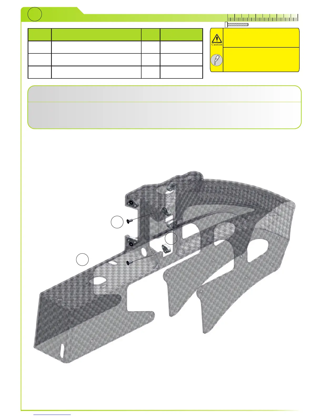 Montieren Sie 6 der Servohalterungen (2) mit den Schrauben (3) an das Monocoque (1) an den