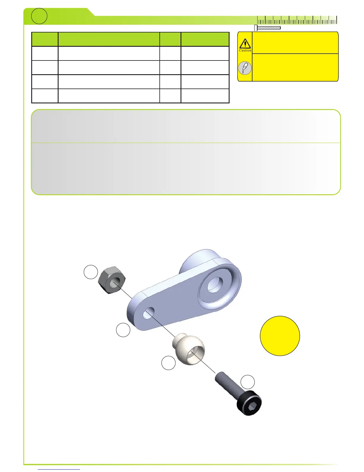 Slide bolt (2) through link ball (4) and servo arm (1) and tighten it with hex nut (3).