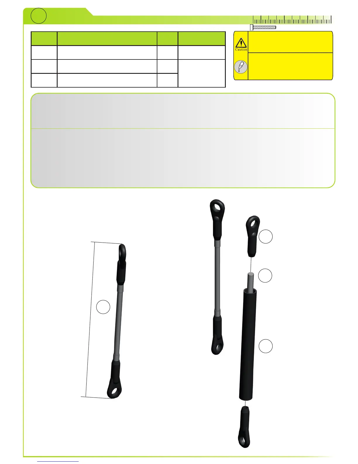 Mount ball links (3) to push rod (2) and slide it through guide rod (1). Mount second ball link (3)
