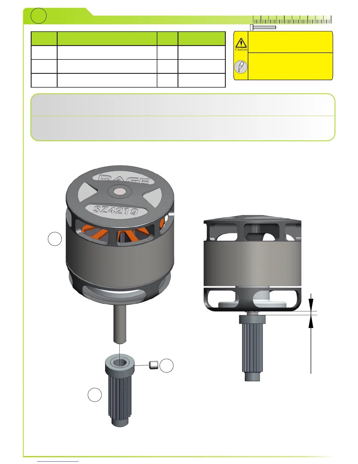 Slide belt pulley (2) onto motor shaft (1) and tighten it with set screw (3) in the right
