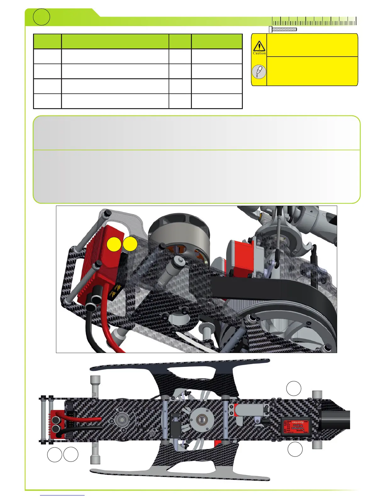 Mount your ESC (2), FBL-System (3) and receiver (4) as shown below. We