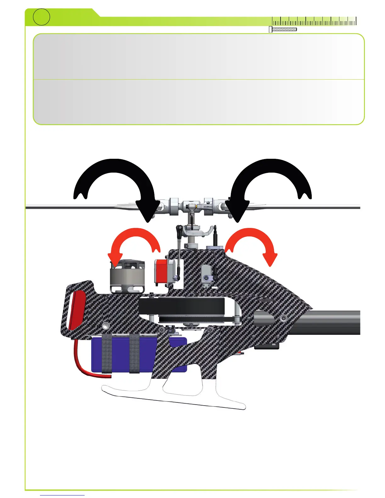 counter-clockwise). The swashplate must tilt aft (red arrow-rotating clockwise) as shown in drawing.
