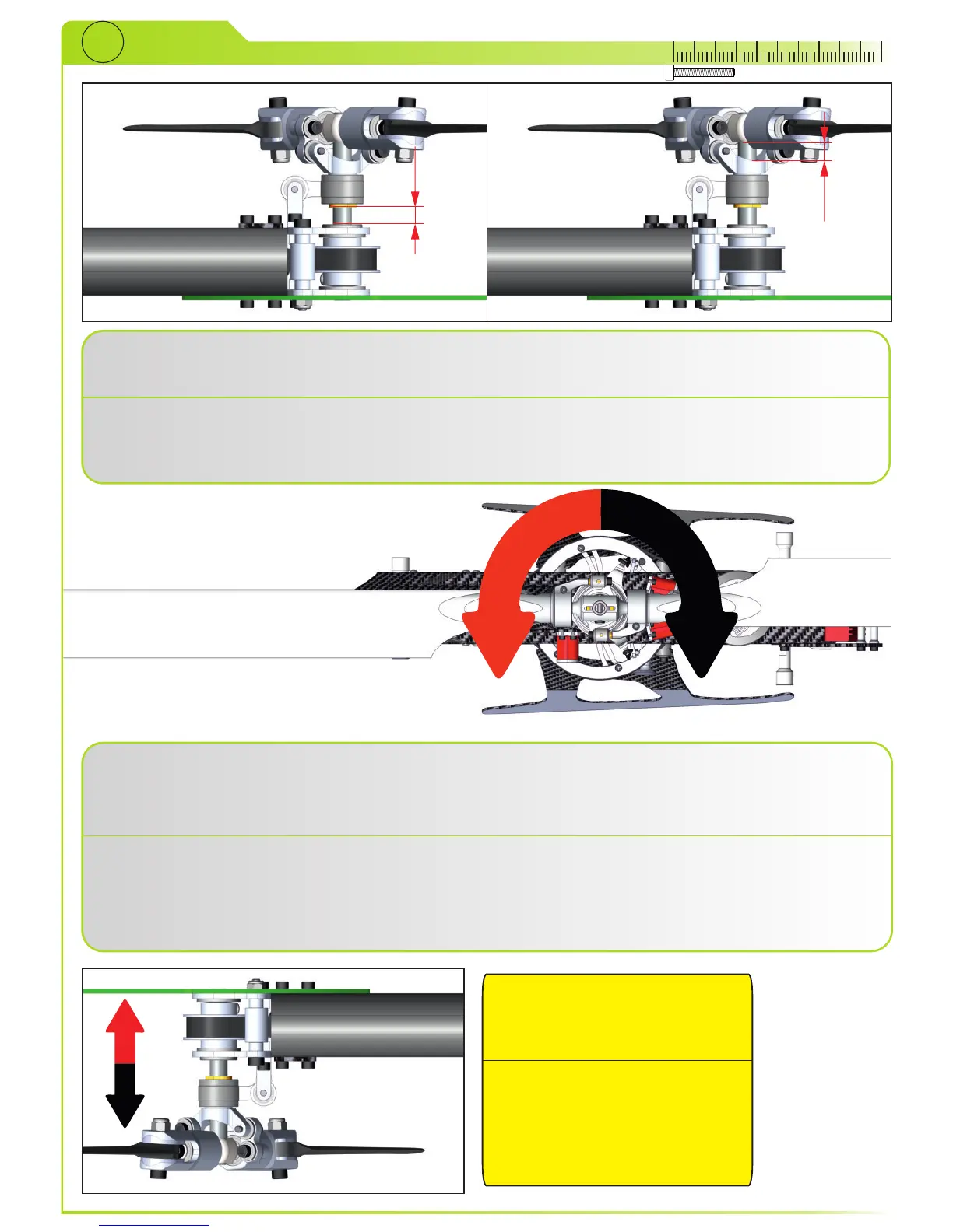 helicopter is rotated counter-clockwise (black arrow) slider should move toward the tail case (red